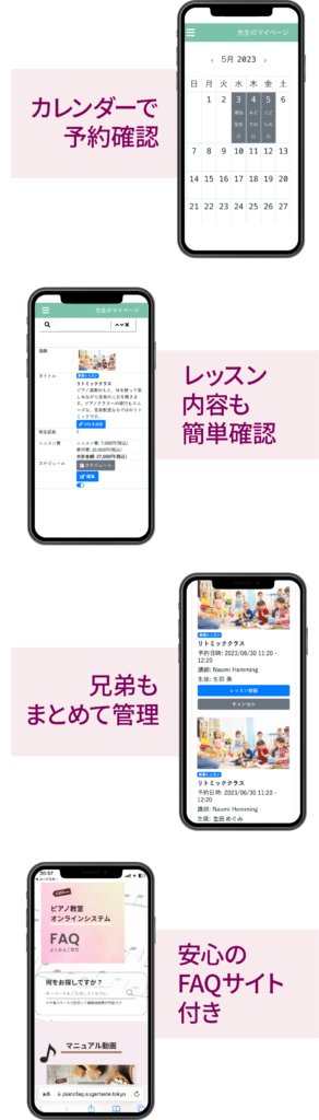 生徒様、オーナー様、先生のためにFAQサイトが付いています。