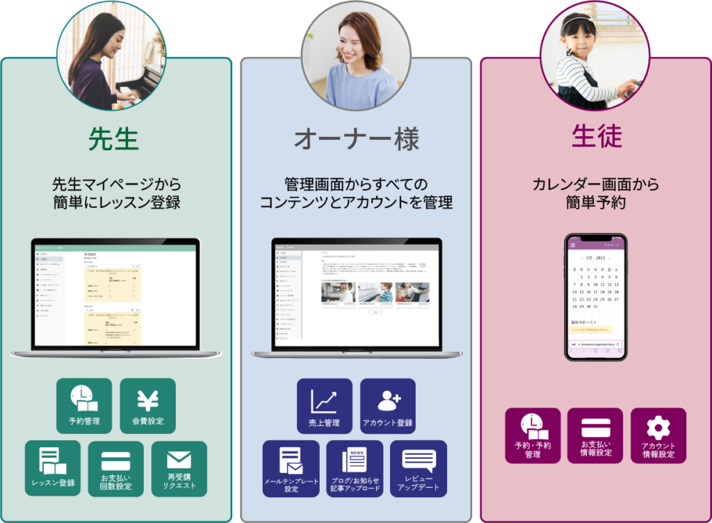 生徒が増えても事務負担ゼロ!レッスンに集中!
